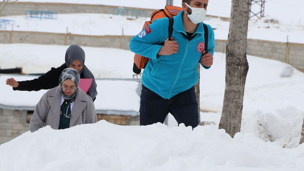 Kar kalınlığının bazı bölgelerde 1,5 metreyi aştığını anlatan Durgun, “Aracımız her evin önüne gidemiyor. Bu nedenle bazen 300-500 metre karda